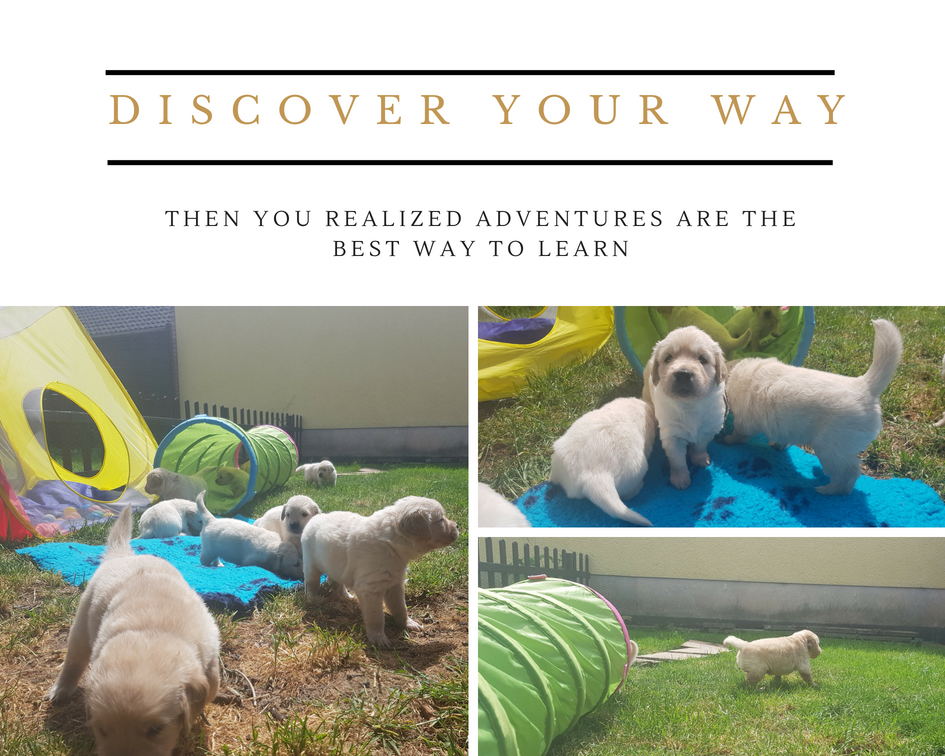 In dieser Woche haben unsere Welpen eine ganz neue Welt entdeckt außerhalb der bis dahin bekannten Umgebung. Es ging das erste Mal nach draußen. Das war ein Abenteuer! So viel zu schnuffeln, zu entdecken und zu sehen. Nach anfänglicher skepsis waren Sie aber alle sehr neugierig und haben Ihre Welt erkundet. Nun wird Morgens direkt schon bescheid gegeben das man nach draußen möchte ;-). Jetzt gibt es kein halten mehr!