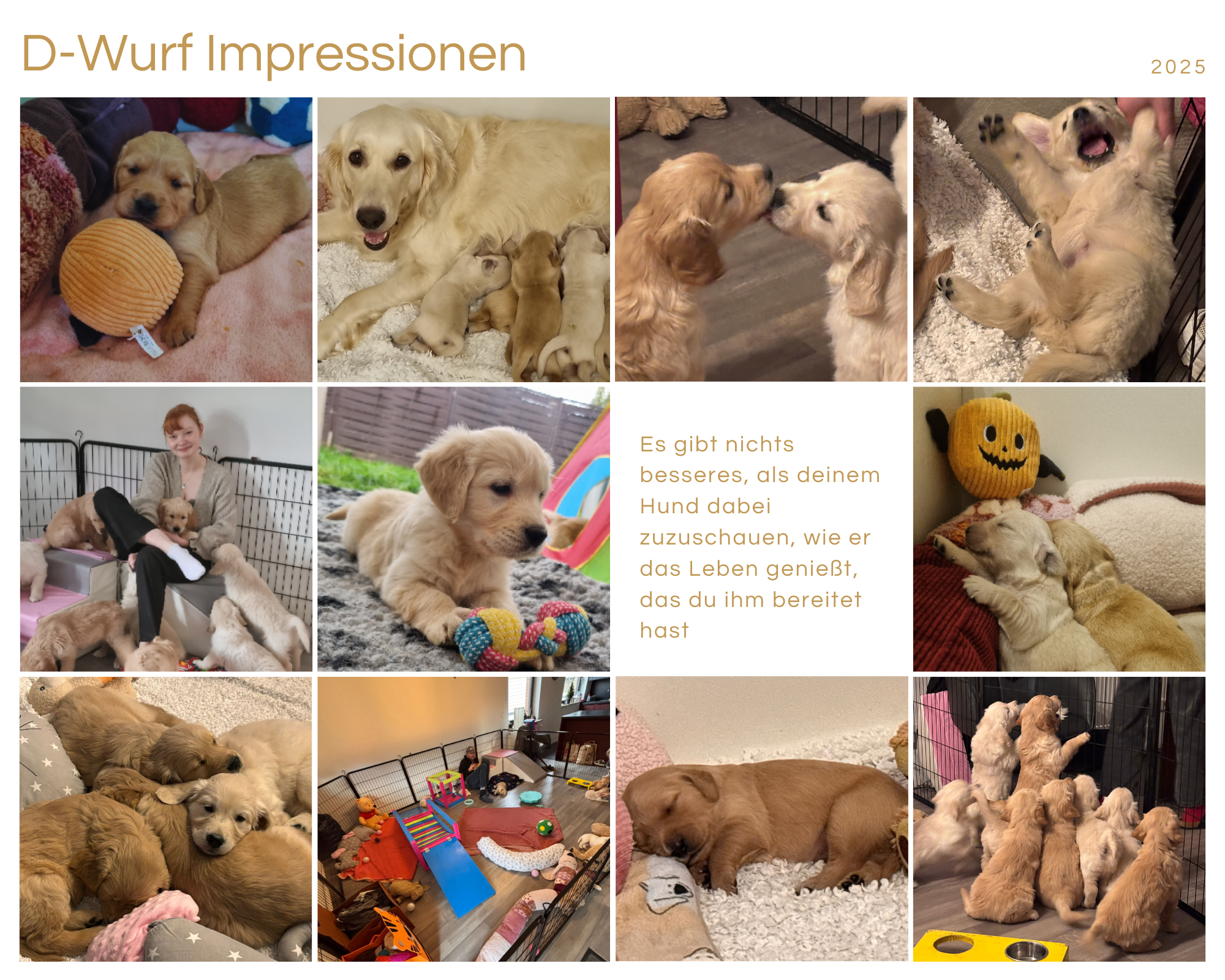 Mit viel Liebe, Dankbarkeit und einem warmen Gefühl im Herzen blicken wir auf diese Welpenzeit zurück und freuen uns darauf, die weitere Entwicklung unserer kleinen D‑chen zu verfolgen.